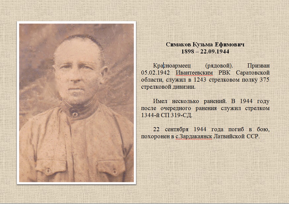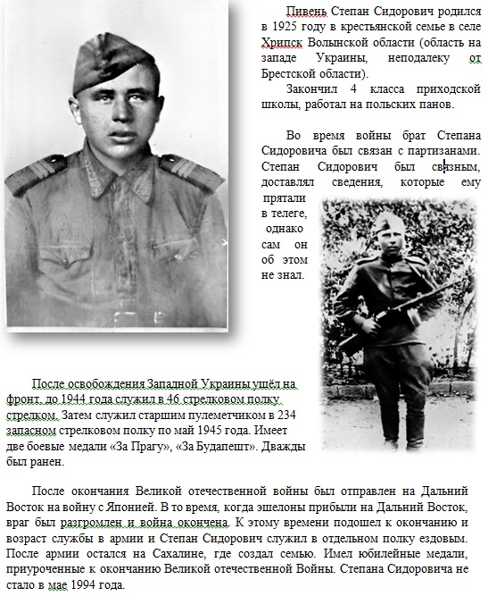Указом Президента Российской Федерации от 16.01.2025 № 28 «О проведении в Российской Федерации Года защитника Отечества», в целях сохранения исторической памяти, в ознаменование 80-летия Победы в Великой Отечественной войне 1941-1945 годов, в благодарность ветеранам и признавая подвиг участников специальной военной операции, 2025 год объявлен Годом защитника Отечества. Дань уважения к ратному подвигу всех, кто сражался за Родину в разные исторические эпохи, а также нынешним героям – участникам специальной военной операции. Тематика года отражает приоритеты современной России, такие как патриотизм, преемственность поколений и уважение к защитникам Родины во все времена. День Победы — это священный день для каждого россиянина, в который вспоминаем тех, кто отдал свою жизнь за свободу и независимость нашей Родины. Нет ни одной семьи, которой бы не коснулась война. В каждом доме из поколения в поколение бережно передаются истории о героях Великой Отечественной войны. Это частичка истории каждой семьи. Наш гражданский долг - не только сохранить и увековечить имена наших родных - ветеранов Великой Отечественной войны и тружеников тыла, но и передать потомкам память о них, об их мужестве и самоотверженности. Спустя 80 лет со Дня Великой Победы, судьбу военного поколения защитников Отечества повторяют сегодня наши мужья, сыновья и братья, принимая участие в специальной военной операции. Именно они, военнослужащие Вооружённых Сил Российской Федерации, переняв славные традиции наших дедов и прадедов, ценою собственных жизней спасших мир от фашизма в победном мае 1945 года, вновь борются с его проявлениями в соседнем государстве, защищая в ходе специальной военной операции по демилитаризации и денацификации Украины интересы мирных граждан. Проявляя мужество и героизм при исполнении боевых задач в ходе специальной военной операции, наши ребята с честью и доблестью исполняют свой воинский долг. Рискуя собой ради успешного выполнения боевых задач, спасения боевых товарищей и гражданских лиц из-под вражеского огня, все они, солдаты и офицеры Вооружённых Сил Российской Федерации, становятся Героями. Многие из них — посмертно. Их имена навсегда вписаны в историю воинской славы нашей страны, став яркими примерами воинской доблести, самоотверженности, чести и отваги для будущих защитников Родины. Отдавая дань подвигу наших дедушек и бабушек, в преддверии 80-й годовщины Победы в Великой Отечественной войне 1941-1945 годов Корсаковский городской суд Сахалинской области присоединяется к онлайн-акции «Бессмертный полк». Материалы, используемые в публикации, взяты из семейных архивов судей и сотрудников аппарата Корсаковского городского суда Сахалинской области. Судьи и работники аппарата Корсаковского городского суда выражают глубокую