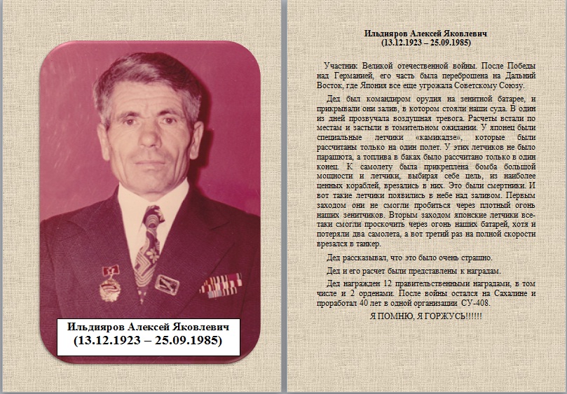 | Гордимся! Помним! Чтим! Корсаковский городской суд Сахалинской области присоединяется к онлайн-акции «Бессмертный полк». | версия для печати | ||||||||||||